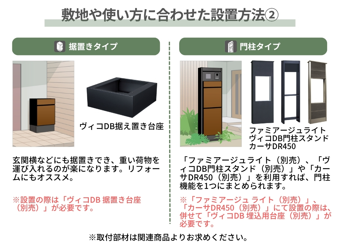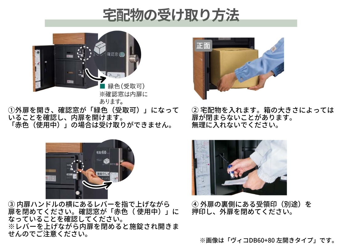 ライフスタイルに合わせて宅配ボックスのサイズを選べます。この商品は120サイズの郵便物を受け取れるので、大型商品を通販で購入するかたにお勧めです。