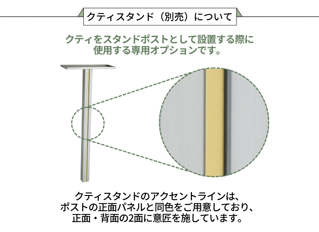 7色のカラーバリエーションから選べる「クティ2B」。埋め込みにも専用スタンドにも対応できるので、新築はもちろんリフォームにもおすすめ。玄関まわりを自分らしく彩り、安心のダイヤル錠付きで毎日の使い勝手も快適です。