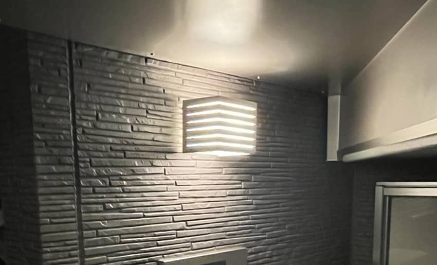 集合住宅のエントランス部に設置しました。光のスリットが高級感があっていいと思います。
