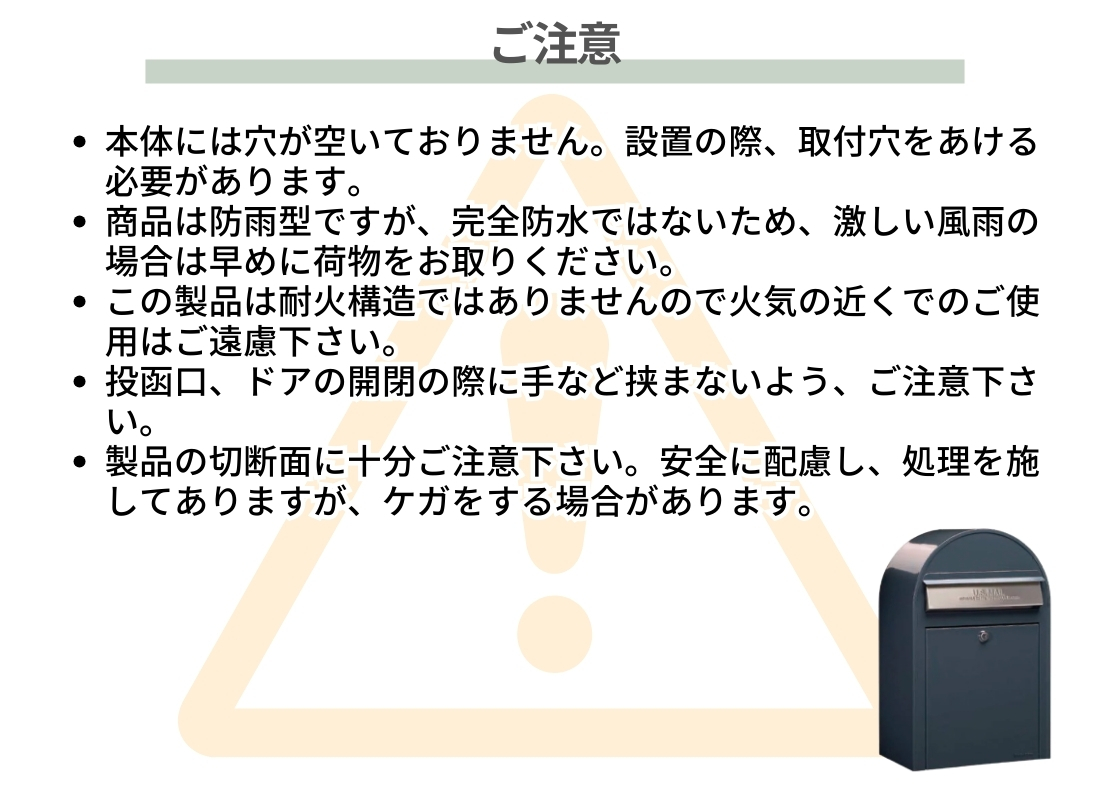 付属品 | 取付金具、鍵3本 |