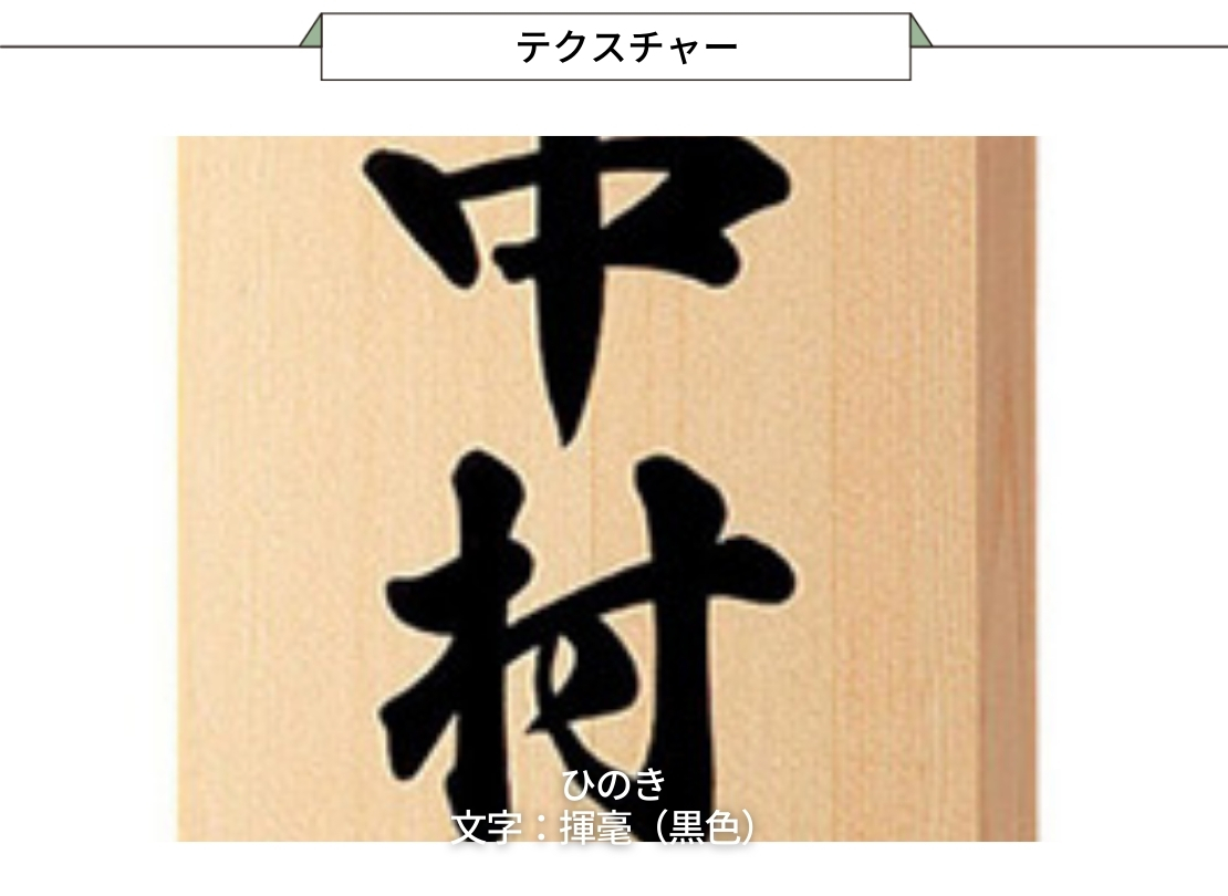 長年使った木製表札の買い替えにも選ばれている銘木表札です。彫り込みをせず筆で仕上げる「揮毫(きごう)」は、文字の輪郭が柔らかく、木の質感をそのまま楽しめるのが特長。経年で味わいが増すため、以前も木の表札を使っていた方が「同じ木でも、少し雰囲気を変えたい」というタイミングに選びやすい一枚です。