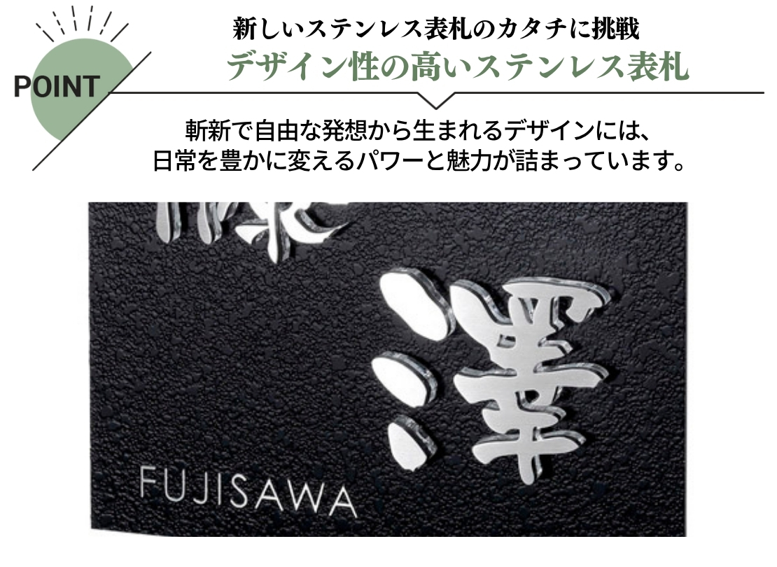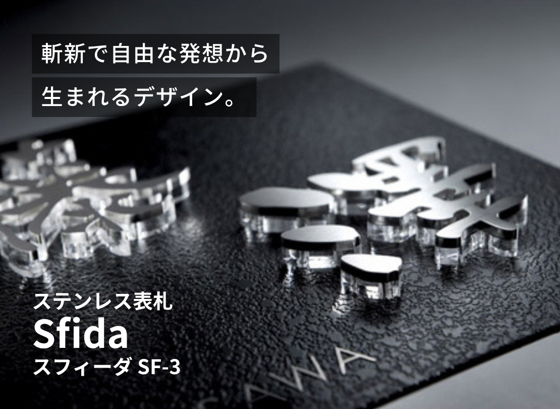 新しいステンレス表札のカタチに挑戦した「Sfida」には、そんな創造魂が宿っています。斬新で自由な発想から生まれるデザインには、日常を豊かに変えるパワーと魅力が詰まっています。
