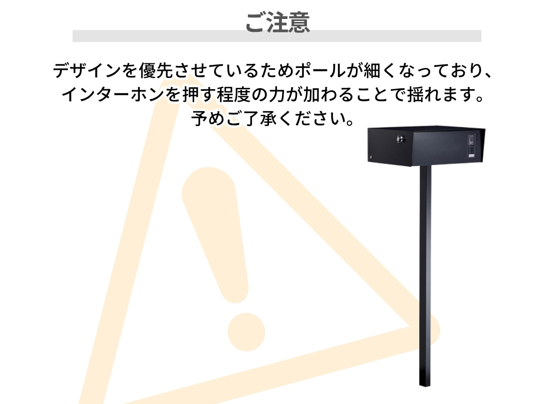 シンプルながら機能性をしっかり備えたスタンドポスト。投函口と取出口を一体化したデザインで、郵便物の出し入れがスムーズに行えます。インターホン子機を内蔵できる仕様なので、外構まわりをすっきりまとめたい方にもおすすめ。カラーバリエーションも豊富で、住宅の雰囲気に合わせて選べます。