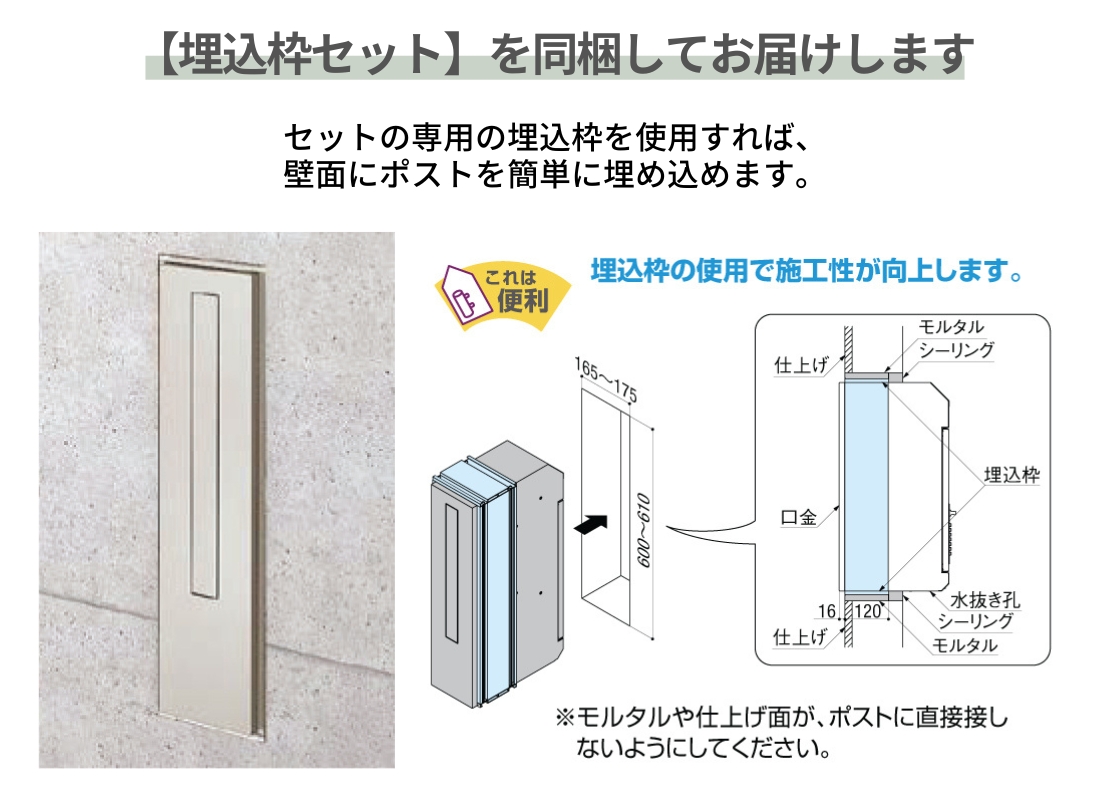備考 | 埋込枠セット(スリム縦型ポスト)8 KKA03■■を同梱。 |