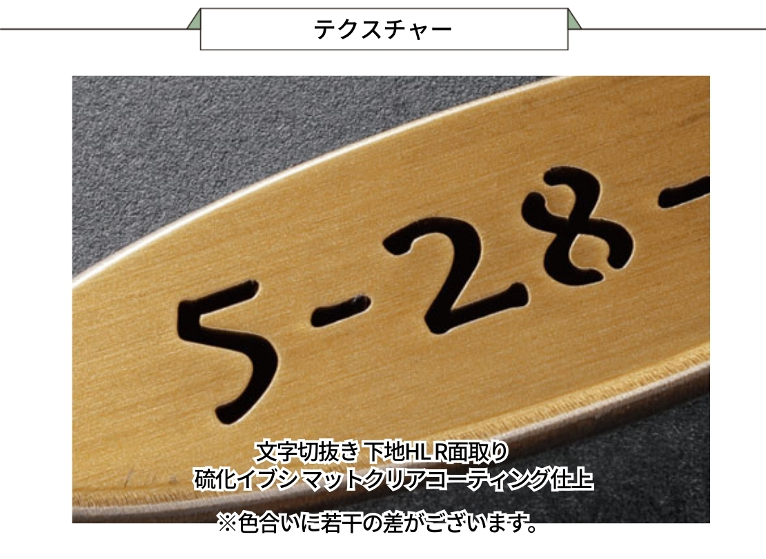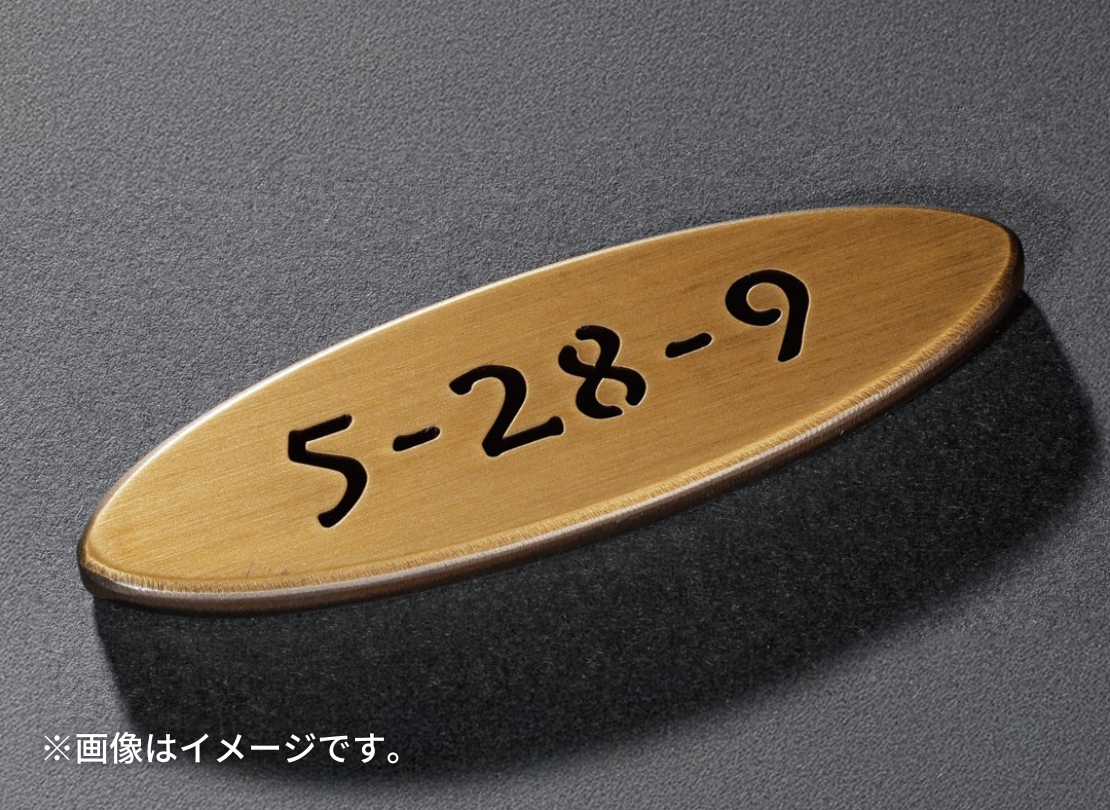 真鍮ならではの落ち着いた色味と、切り抜き文字の陰影が印象的な番地オプションです。表札と素材感を揃えたい方や、玄関まわりをさりげなく格上げしたい場合に相性が良く、ラシック切文字と組み合わせることで統一感のある外観に仕上がります。主張しすぎないサイズ感なので、デザイン表札の引き立て役としてもおすすめです。