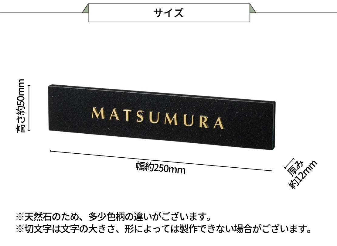 仕上げ | ・切文字(T2mm) サテンゴールド塗装 |