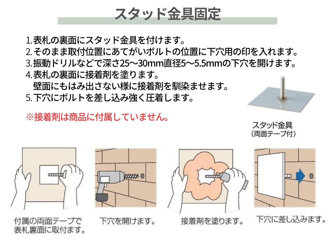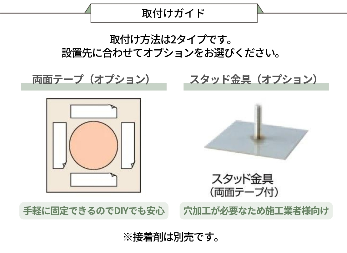 取付 | 貼り付け・スタッド金具付 |