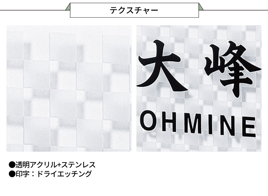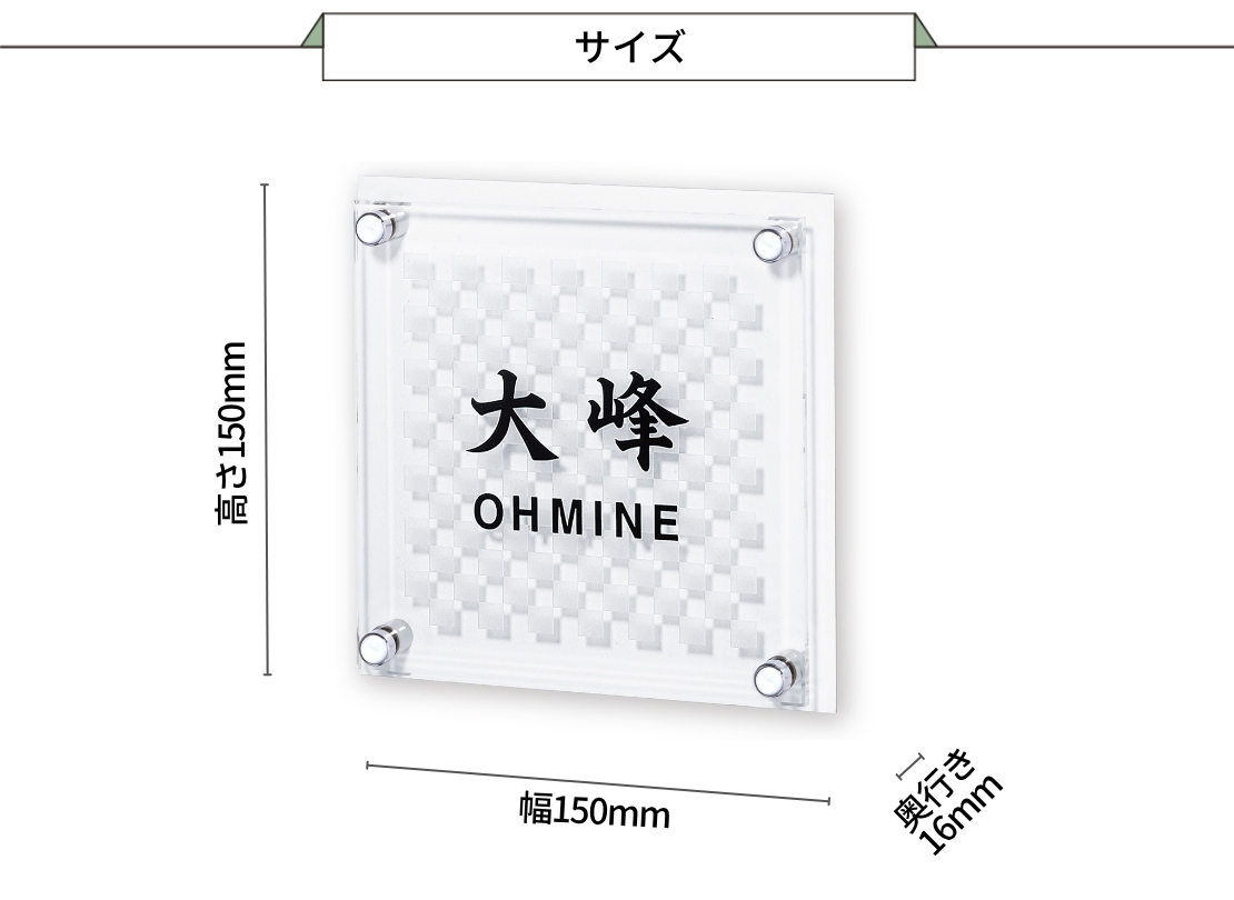 市松模様をあしらったアクリル表札は、光を受けて立体感ある陰影を生み出し、玄関を上品に演出します。途切れることなく続く柄には「繁栄」の意味が込められ、風水でも良いとされる白色と組み合わせることで、さらなる運気アップを願う方に最適。高級感と縁起の良さを両立したデザインをお探しの方におすすめです。