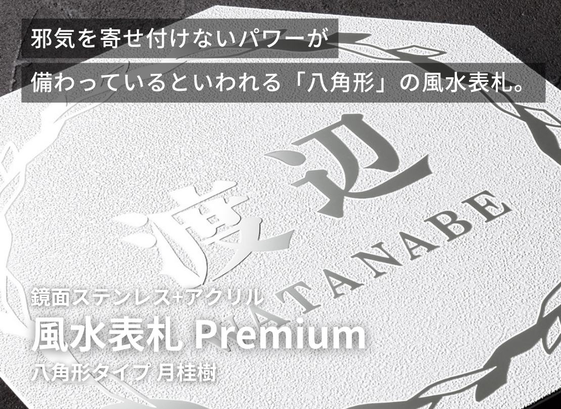 邪気を寄せ付けないパワーが備わっているといわれる「八角形」の形状に加え、悪い気を跳ね返すといわれる「鏡面」のステンレスを採用。お家の運気を守る風水表札です。