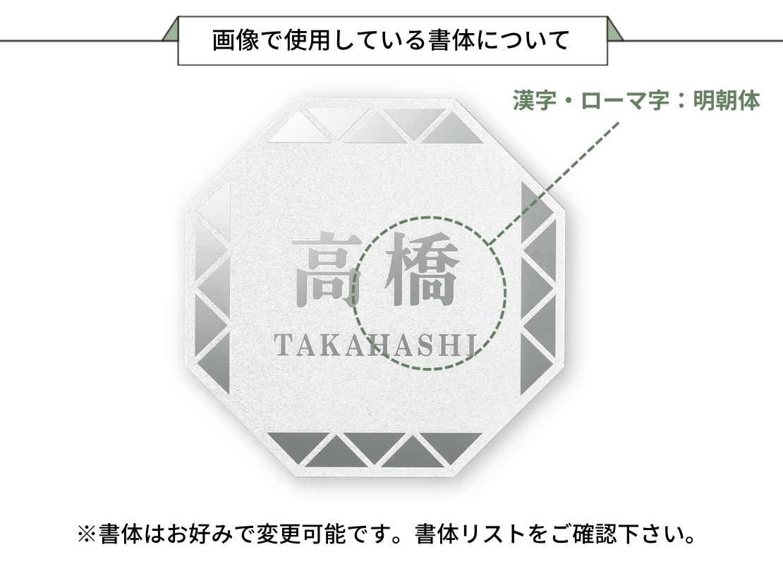 また、別商品ではありますが、当店で人気の「【丸三タカギ】風水表札 桧タイプ」では、漢字に「楷書体」、英字に「角ゴシック体」を組み合わせた例もございます。