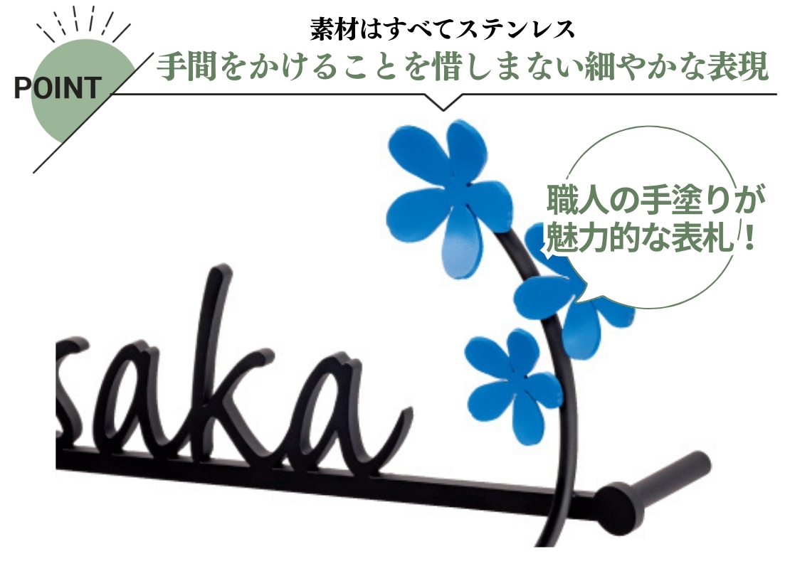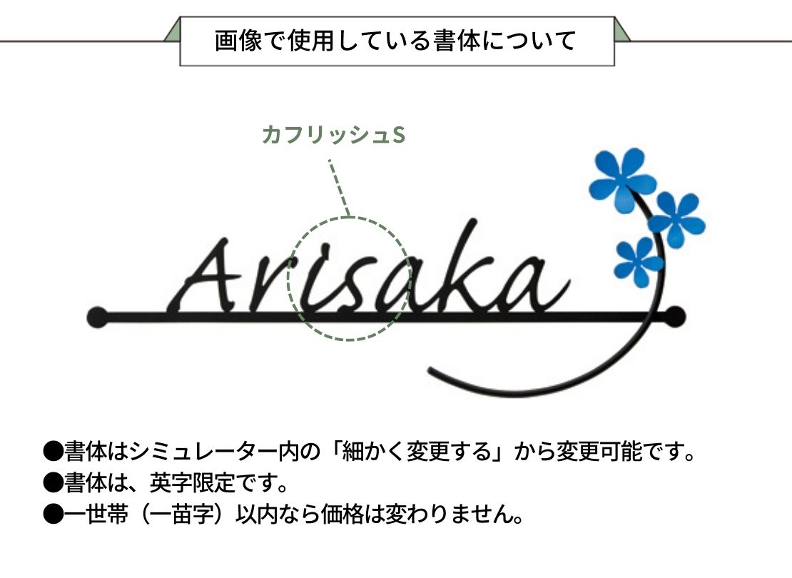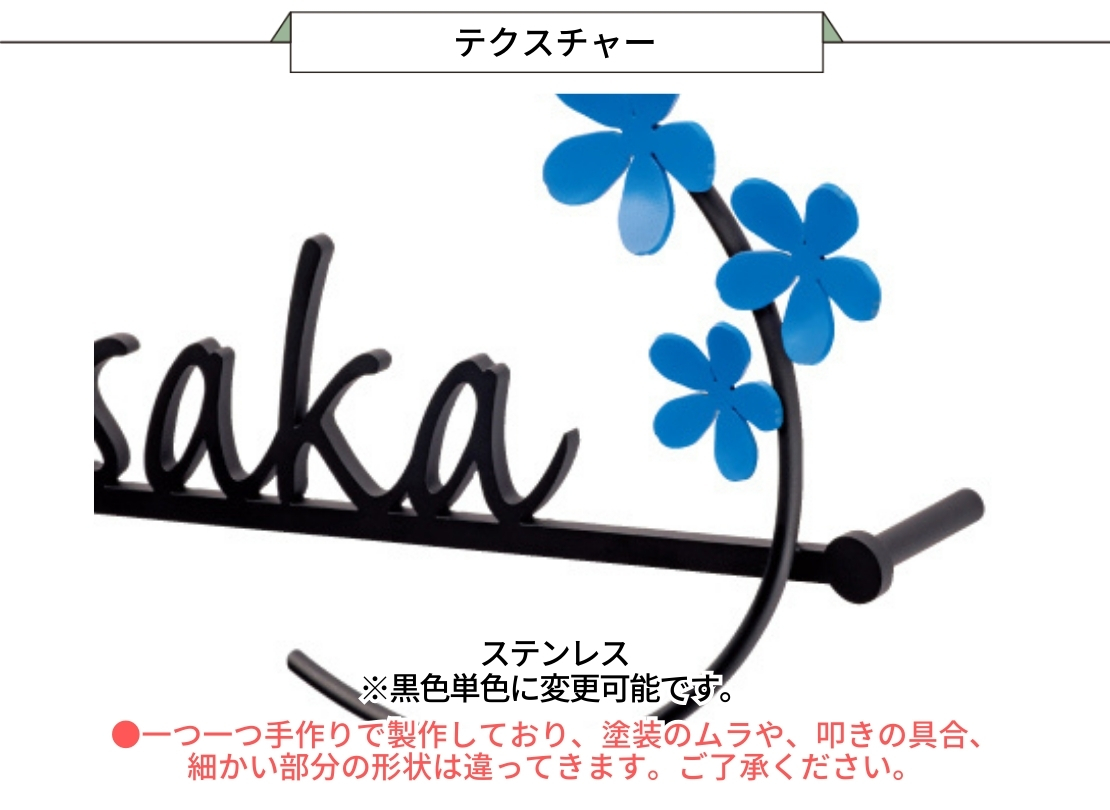 「カリーノ」はイタリア語で可愛いという意味です。その意味の通り可愛いデザインの表札に仕上がっています。