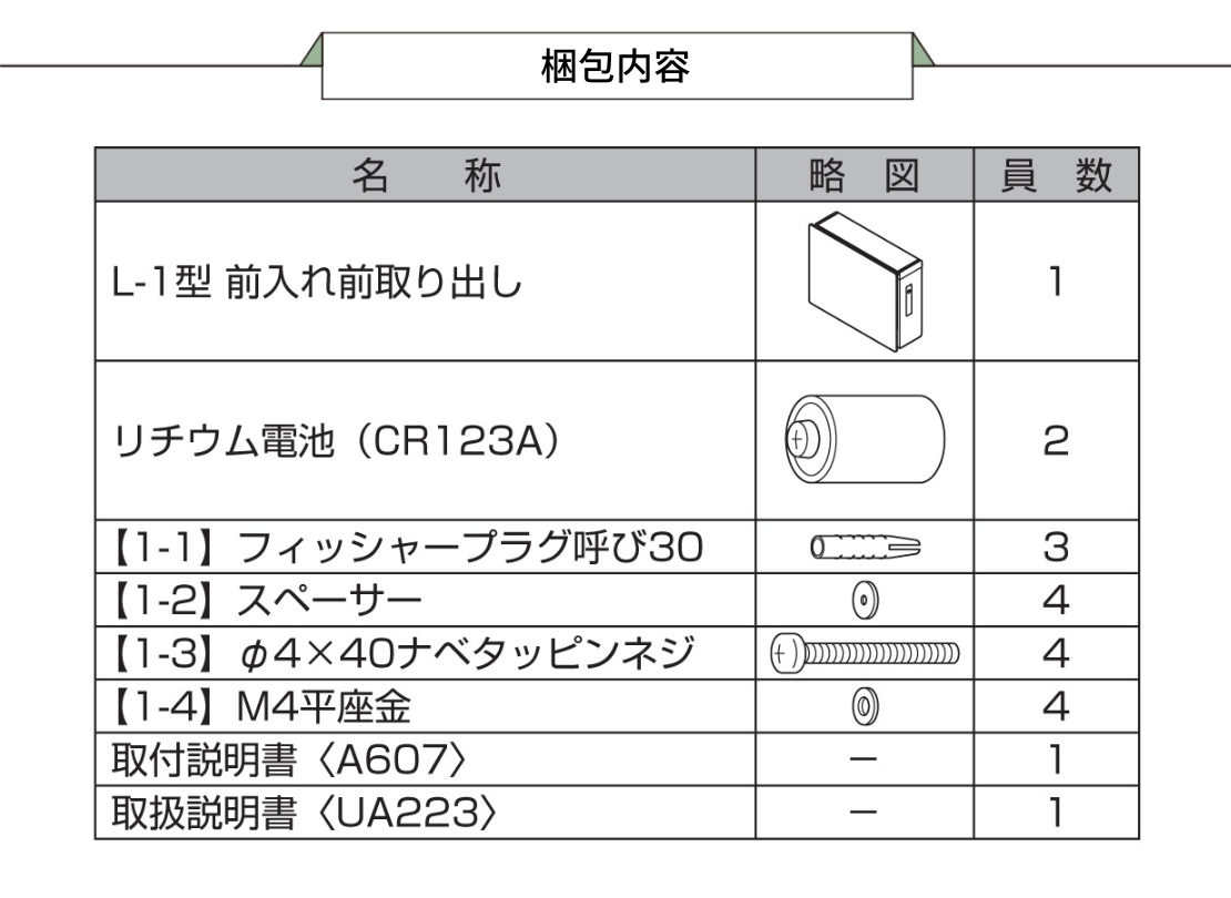 備考 | 壁取付用部品・リチウム電池(CR123A)2本同梱 |