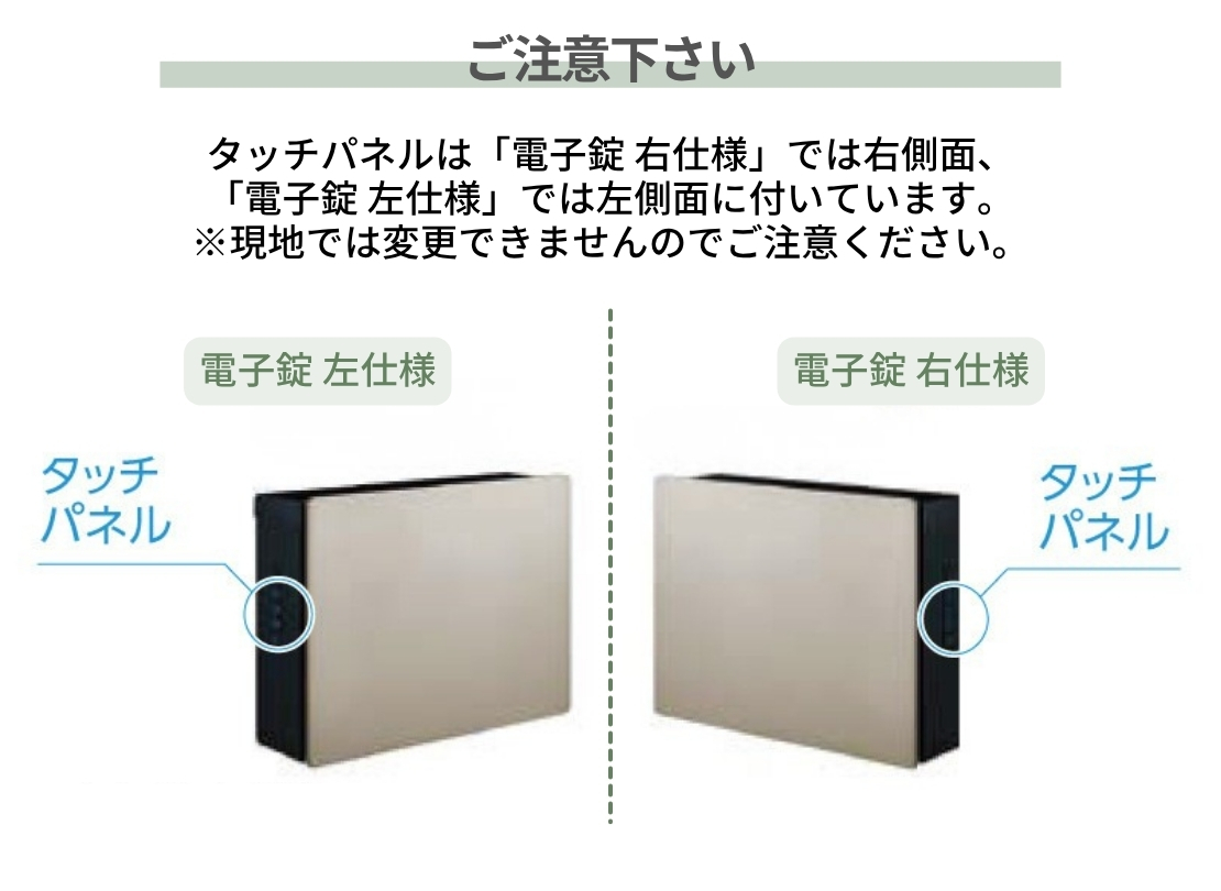 電気工事が不要で手軽に使える電池式の電子錠ポストです。タッチパネルはLEDが点灯するので、夜間でも番号入力や取出しがスムーズなのが大きな魅力。操作性とデザイン性の両方を求める方におすすめで、玄関まわりをワンランク上の雰囲気に仕上げたい方にもぴったりのモデルです。