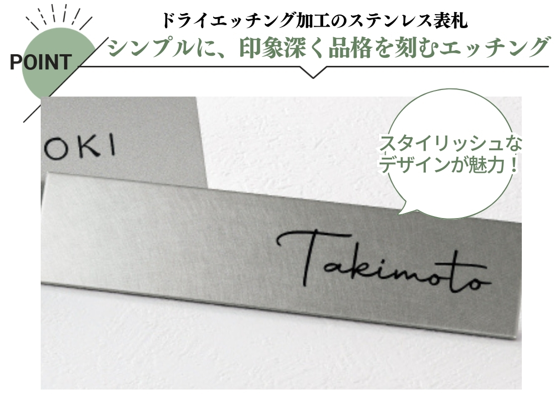 短納期でありながら、シンプルでさりげなく個性も表現できるステンレス表札をお探しの方にオススメです。