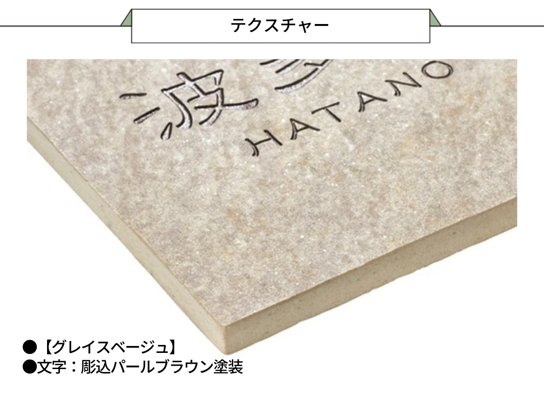 仕上げ | グレイスベージュ(表札のカラーは「グレイスグレー」に変更可能です) |