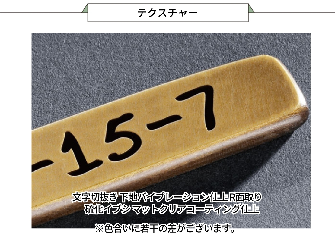 仕上げ | 文字切抜き 下地バイブレーション仕上 R面取り |
