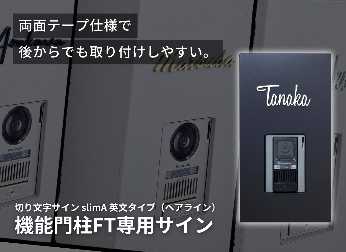 A. デザインや文字数によって多少異なりますが、FT専用切り文字サイン(slimA)の場合でおおよそ「W156×H60mm」程度となります。