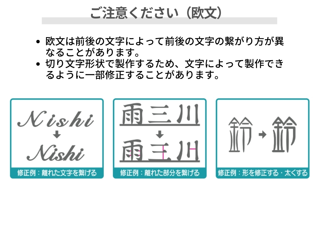 筆記体のおしゃれな欧文サイン。専用3フォントから選択可能です。