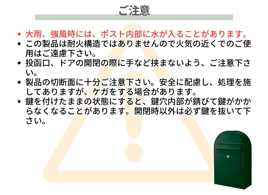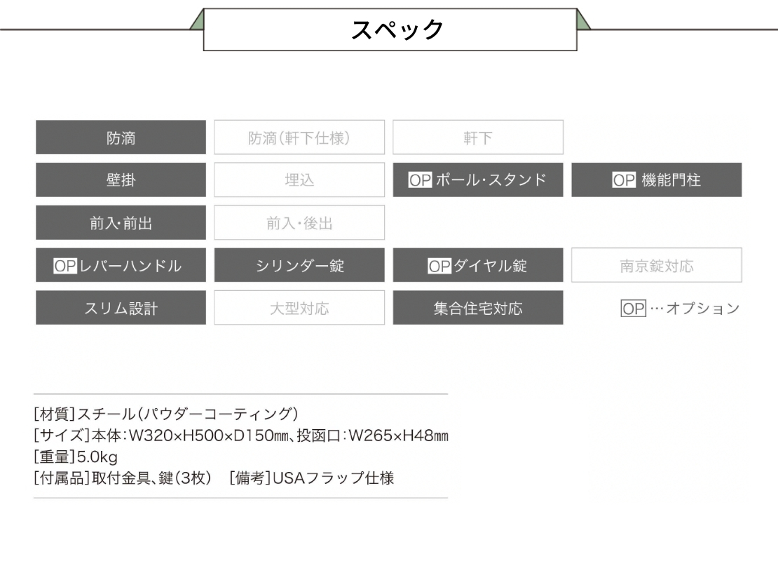 付属品 | 取付金具、鍵(3枚) |