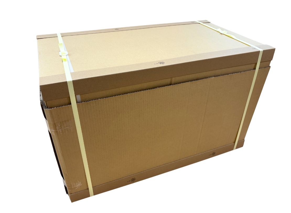 このままの状態では運送中の破損リスクが高いため、当店では安全な状態でお届けするために、全体を段ボールで囲った再梱包を行ったうえで発送しております。