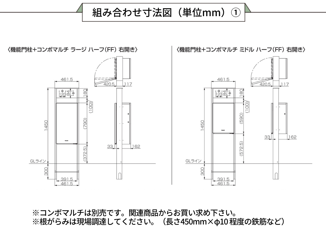 サイズ | 幅462×奥行き105×GL上高さ1450(全長1750) |