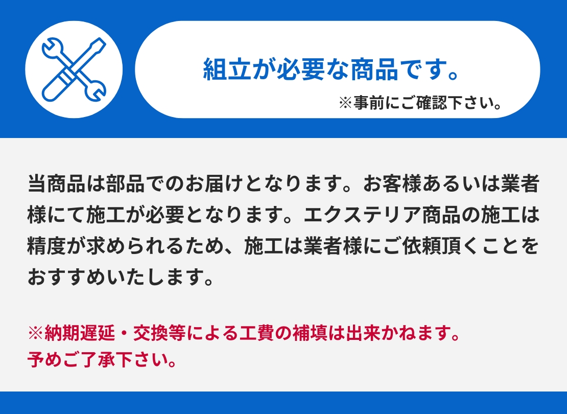 ※取付説明書に同梱されている取り扱い説明書に保証書が付いています。(本取付説明書はご購入前の確認としてご覧ください。)