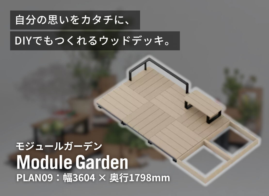 ウッドデッキは、もっと自由に。使い方にあわせて、広さも形も、レイアウトは無限大。持ち運びできる5つのモジュールを組み合わせて、さあ、どんな空間をつくりあげよう。足したり引いたり、試行錯誤。カスタマイズできる幸せは、エクステリアにだってあるべきなんだ。晴れた空の下、今の自分にぴったりなスタイルを表現しよう。