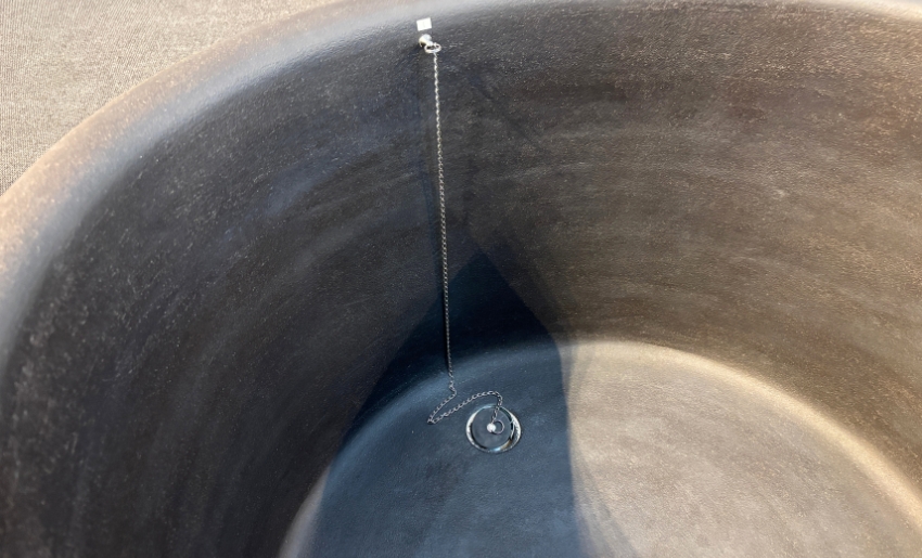 排水用の穴とゴム栓がしっかり備わっており、しかもチェーン付き。