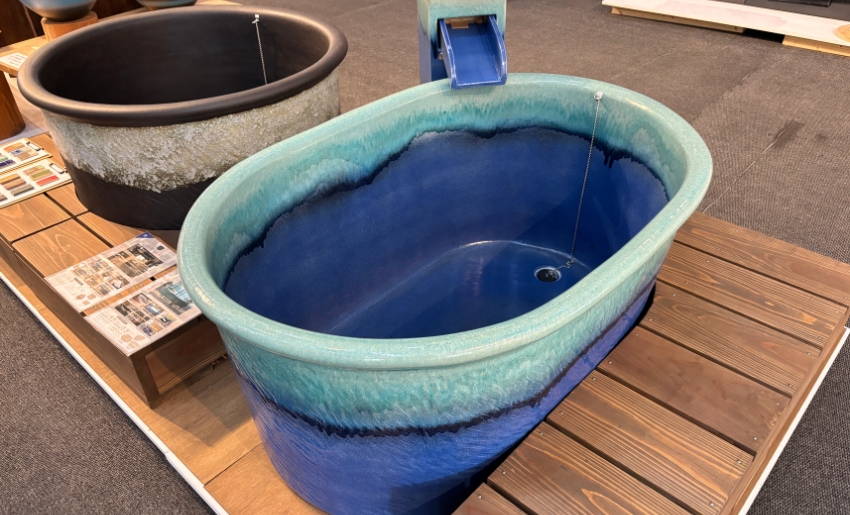 「浴槽」と聞くと実用品を想像しがちですが、信楽焼の浴槽は機能性に加えて美しさも兼ね備えたインテリア。
