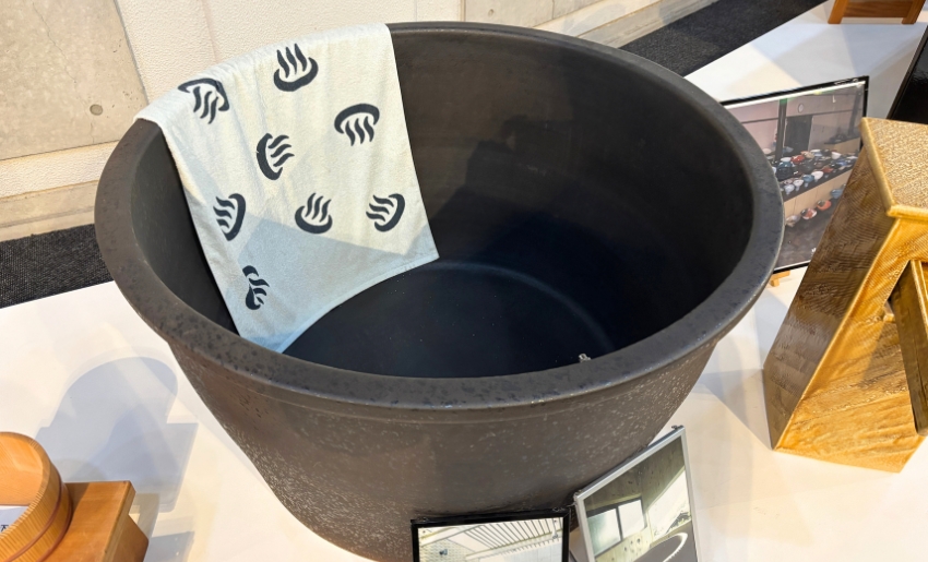 また、実物展示ならではの体験として、浴槽に触れてみるとしっとりとした質感が心地よく、厚みのあるフチからは手づくりの確かな力強さが伝わってきました。