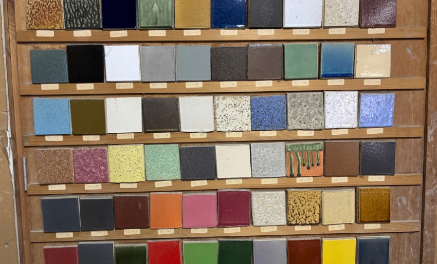 - 色どり鮮やかな釉薬のカラーサンプル。中には薬の関係でもう出せない色もあるとのこと。