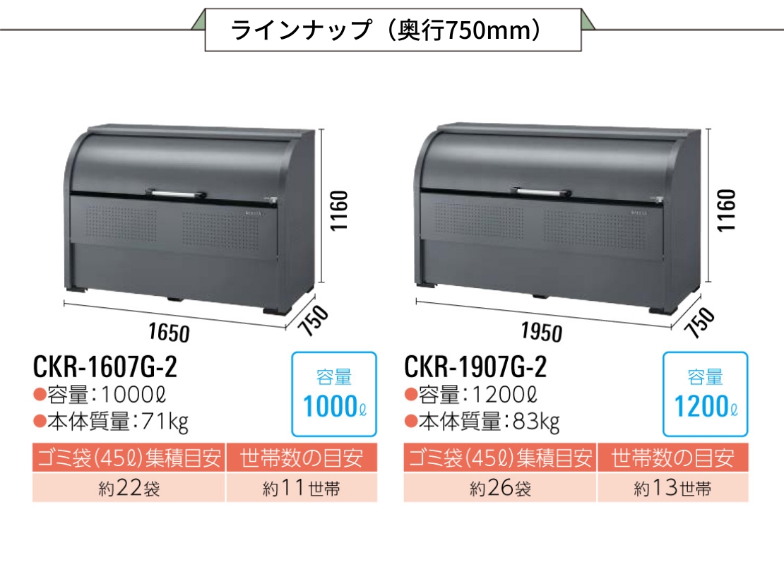 【ダイケン】ゴミ収集庫 クリーンストッカーCKR-2 奥行き600mmタイプ