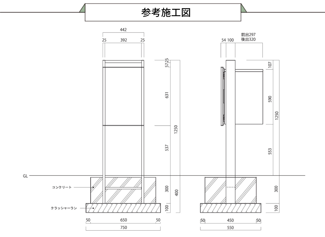 サイズ | 幅442×高さ1,250(1,550)×奥行100mm |