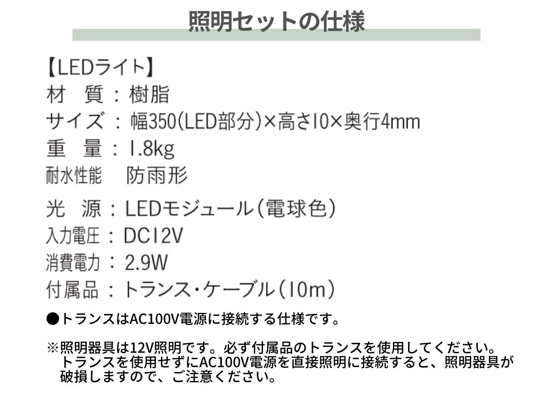 照明セット 仕様 | ■LEDライト |