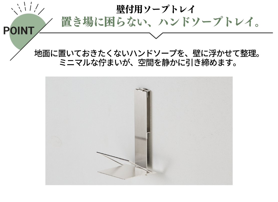 無駄のないフォルムで外構の印象を崩さず、ハンドソープまわりをすっきりまとめられます。