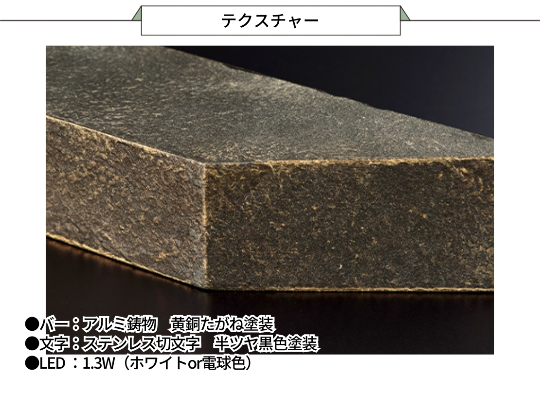 仕上げ | バー:アルミ鋳物 黄銅たがね塗装 |