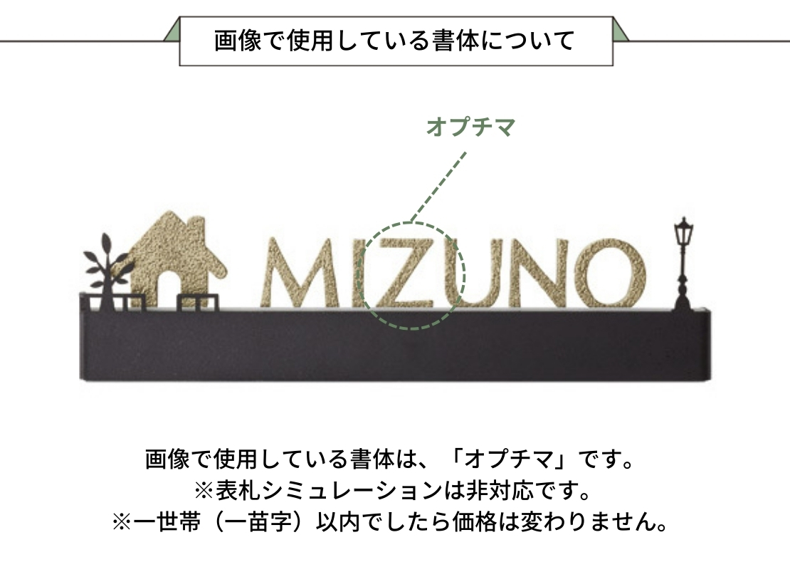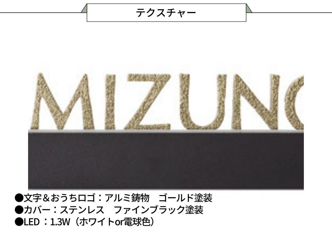 仕上げ | 文字&おうちロゴ:アルミ鋳物 ゴールド塗装 |