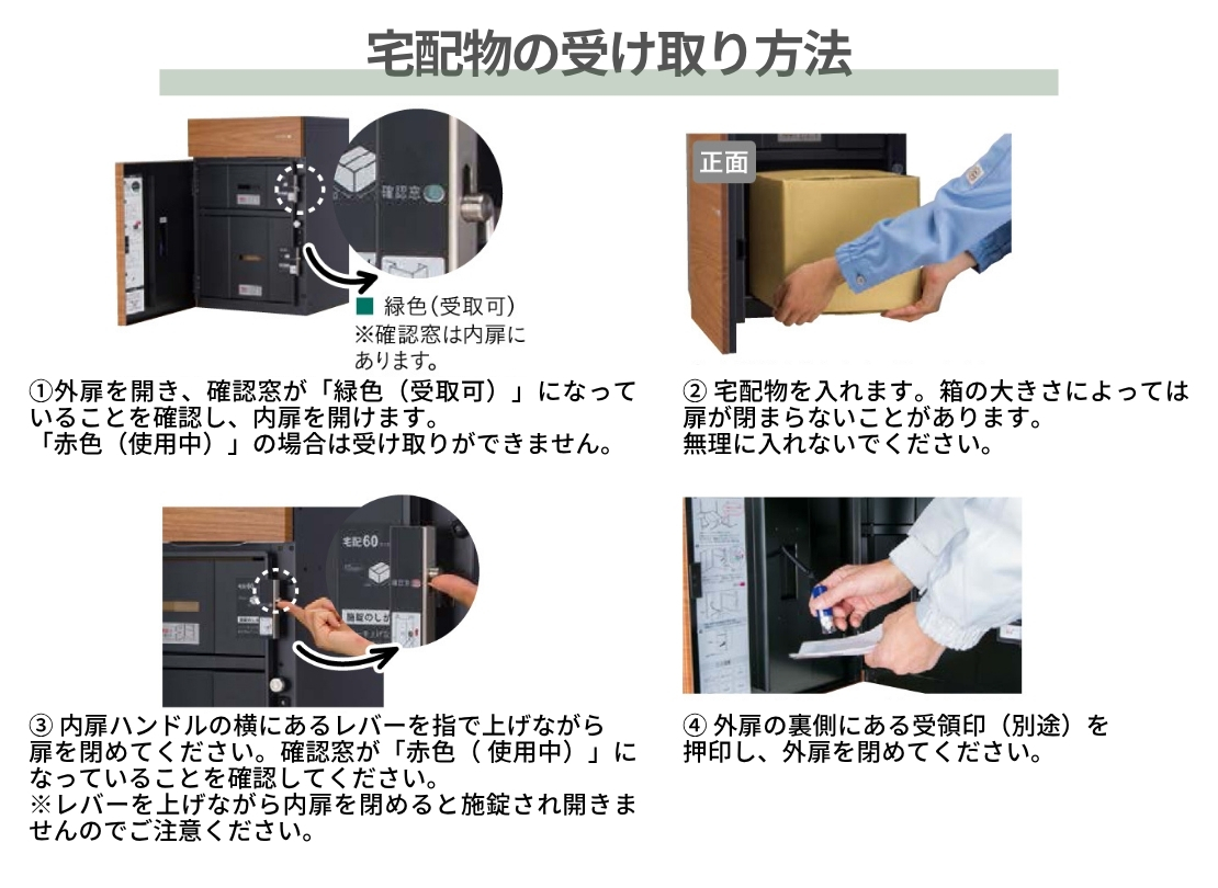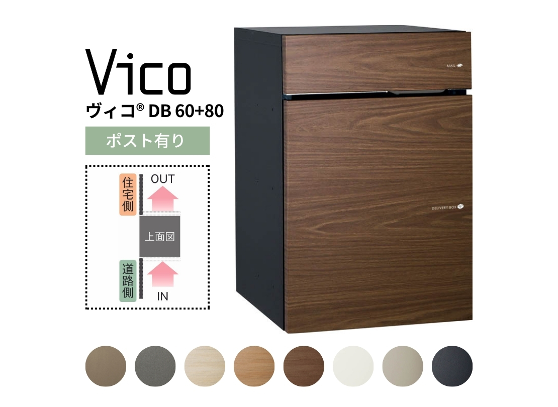 ライフスタイルに合わせて宅配ボックスのサイズを選べます。この60+80サイズは郵便ポスト+60サイズ・80サイズの郵便物を同時に受け取れるのでよく通販を使用される方にお勧めです。