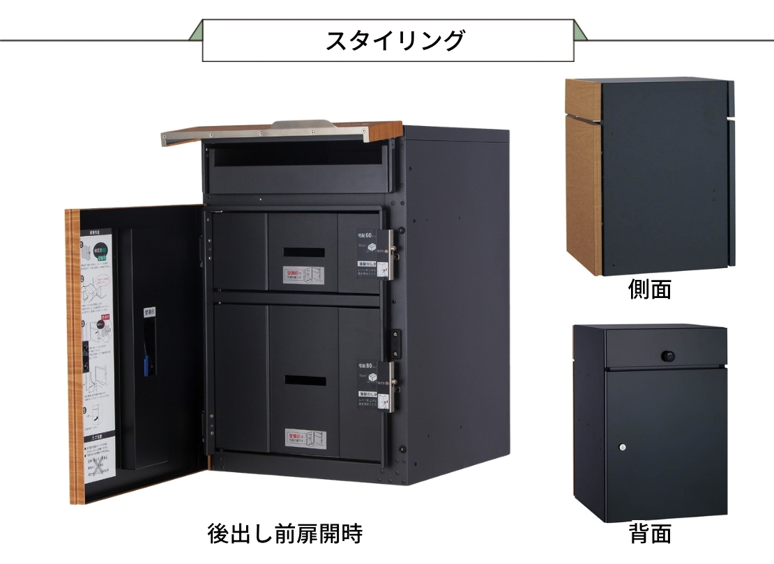 受け取りの確認窓が見えないすっきりしたデザインは、建築にしっとりと溶け込みます。また、使い方をできる限りシンプルにして、使いやすさを追求。家族にも宅配業者様にもやさしい宅配ポストを実現しました。